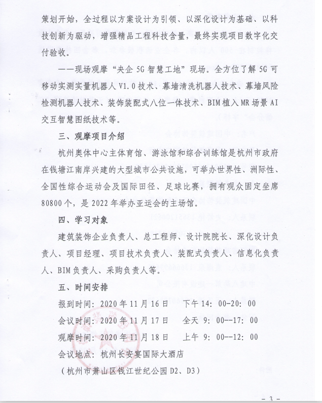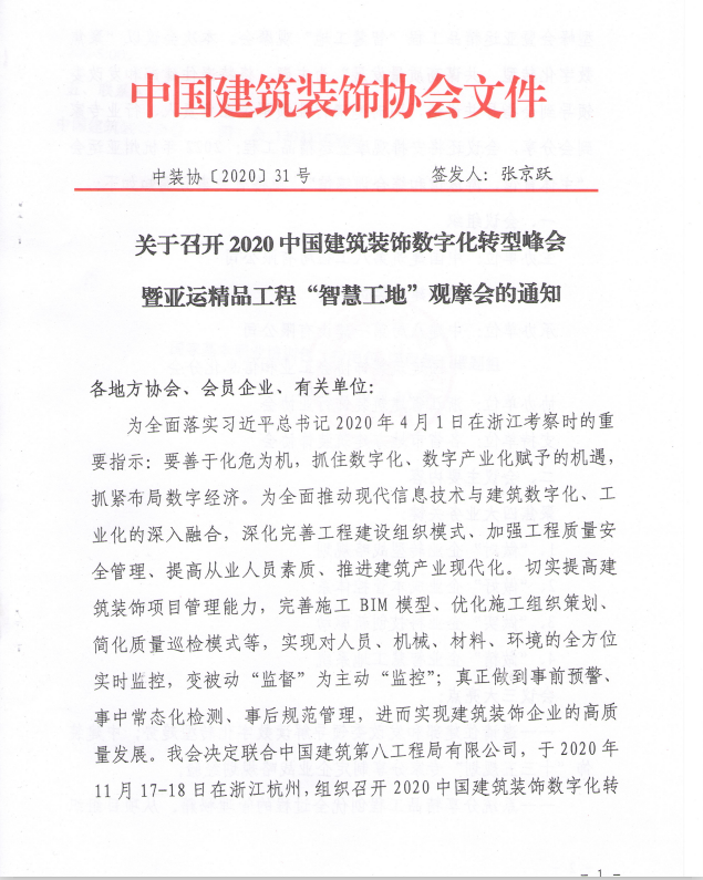 2020中国建筑装饰数字化转型峰会暨亚运精品工程“智慧工地”观摩会的通知