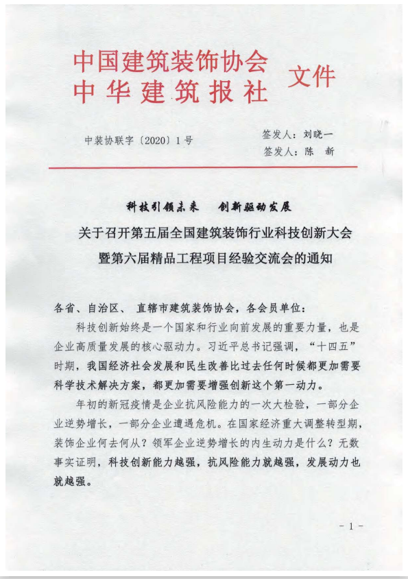 关于召开第五届全国建筑装饰行业科技创新大会暨第六届精品工程项目经验交流会的通知