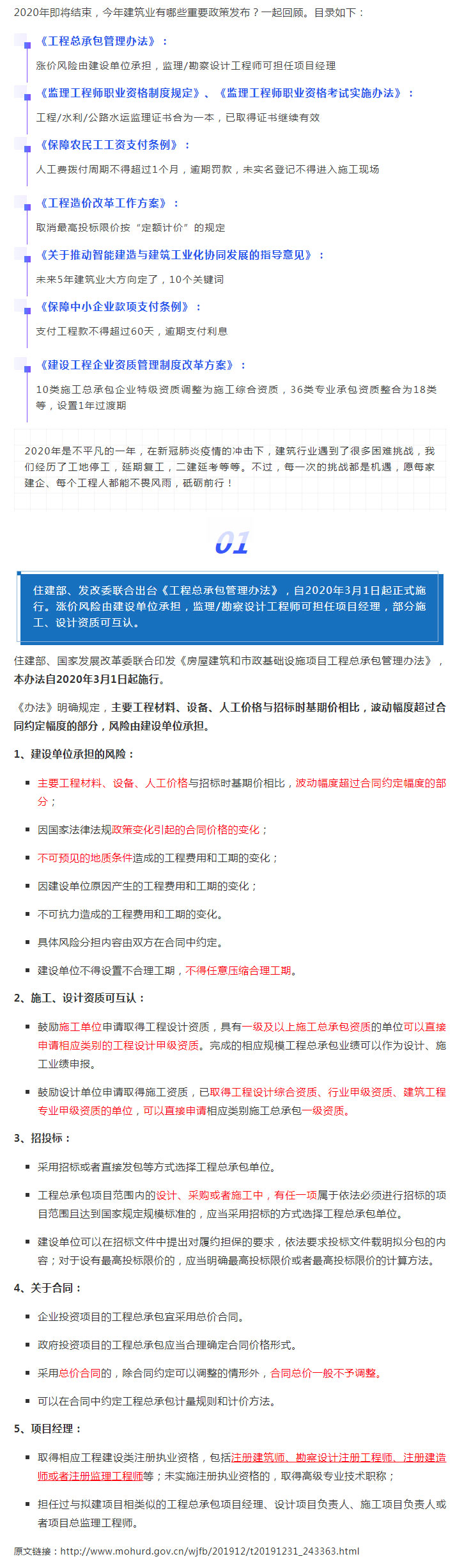 资质变革、工程款支付新规!2020年建筑业重要政策盘点