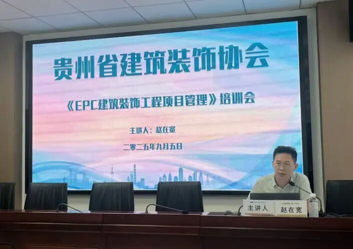 2025年9月5日,贵州省建筑装饰协会在贵阳市多彩贵州航空楼10层会议室成功举办了《EPC 建筑装饰工程项目管理》培训会。培训会特别邀请到协会专家、高级工程师赵在宽担任主讲人。