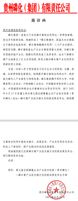 • 行业交流“代言人”:为借鉴全国磷石膏综合利用先进经验,助力贵州相关工作提质升级,2025年8月25日,协会受邀参加全国磷氟工业论坛。论坛期间,协会代表围绕“磷石膏建材在建筑装饰领域的规模化应用路径”主题,分享贵州在政策落地、企业联动等方面的实践成果,同时精准对接全国范围内的技术资源、产业模式与合作机遇,将外部先进经验转化为推动本地行业发展的思路举措,为贵州磷石膏产业发展注入外部动能。