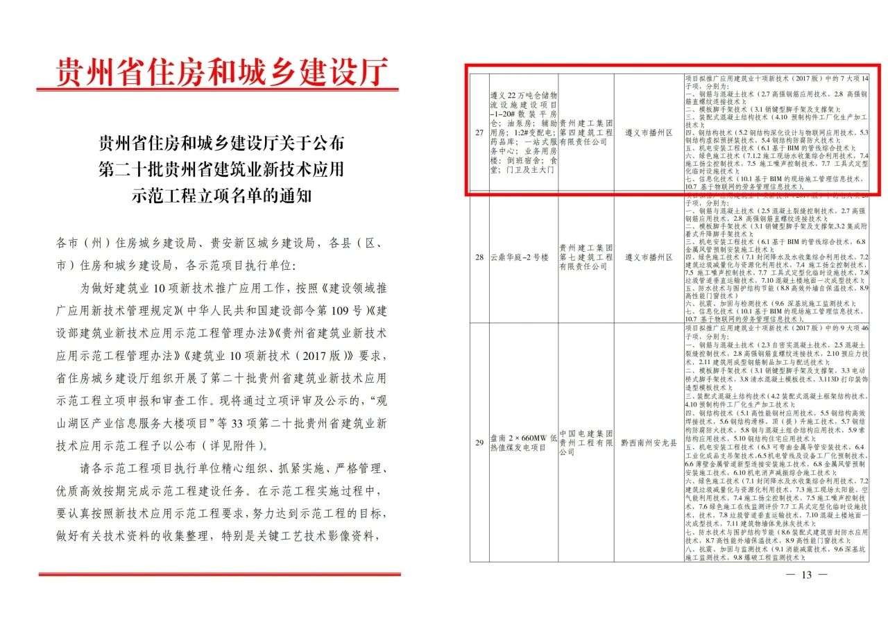 日前,由贵州建工集团四公司承建的遵义22万吨仓储物流设施建设项目立项贵州省建筑业新技术应用示范工程。