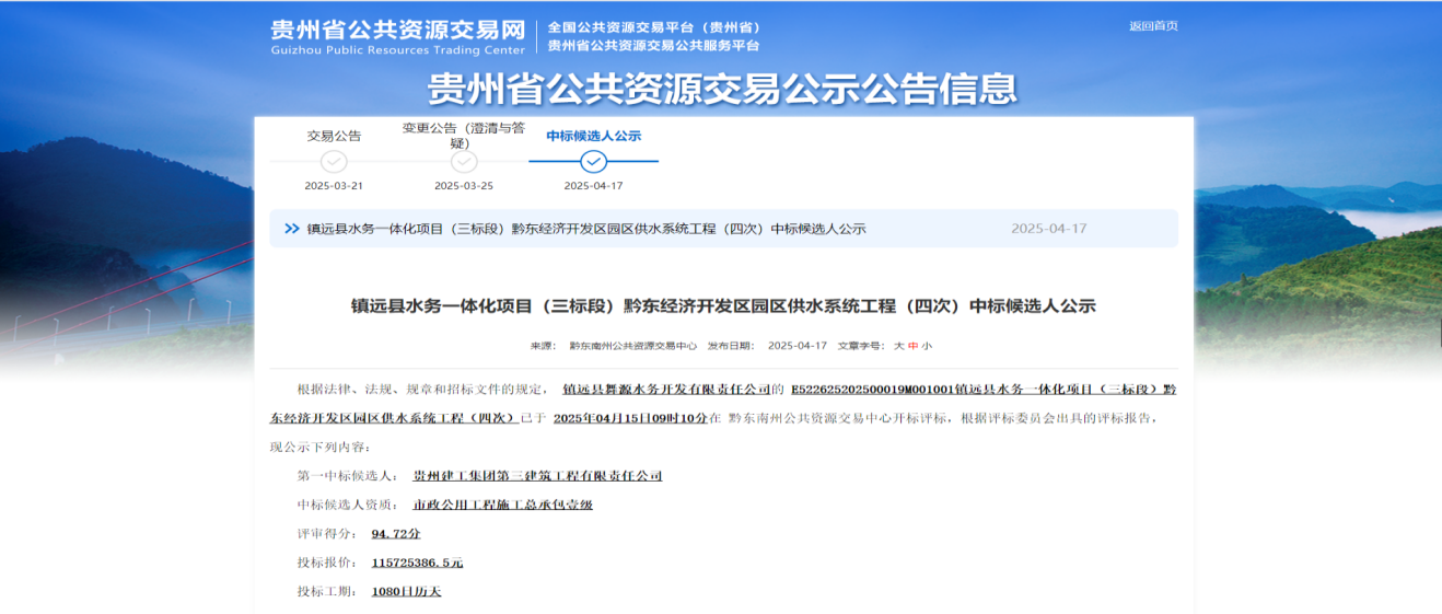 近日,公司以1.15亿元成功中标镇远县水务一体化项目(三标段)黔东经济开发区园区供水系统工程(四次)项目,此次中标不仅巩固了公司在省内市场的优势地位,更标志着其在水务环保核心业务领域取得重大突破,为服务城市高质量发展、保障民生用水安全开辟了新路径。