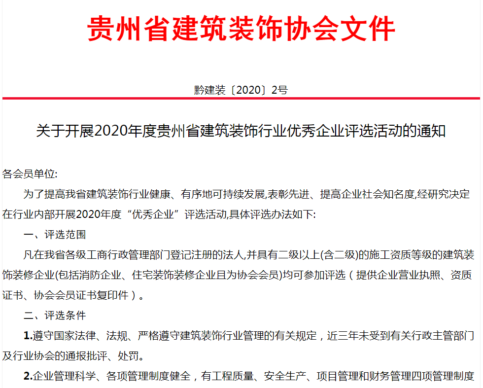 8.评选活动由贵州省建筑装饰协会秘书处负责,并组织评选,协会审定表彰。