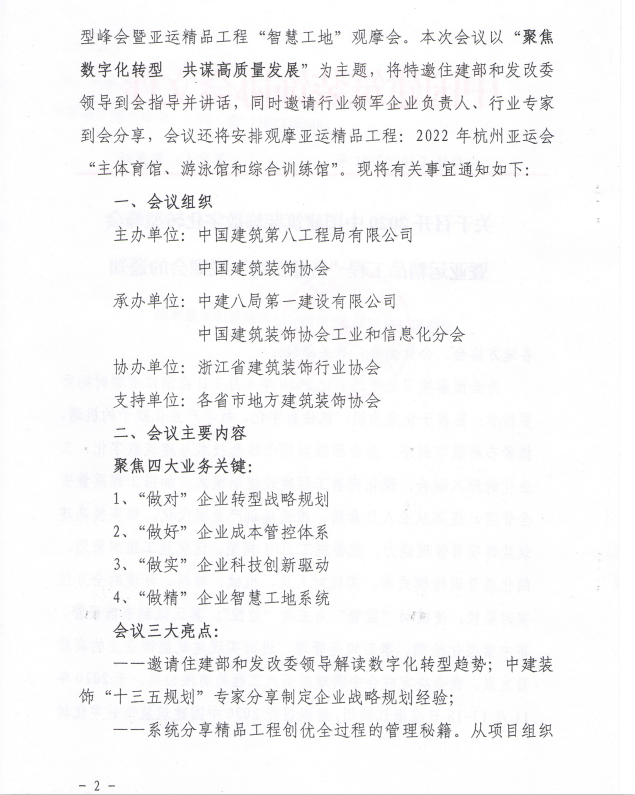 2020中国建筑装饰数字化转型峰会暨亚运精品工程“智慧工地”观摩会的通知