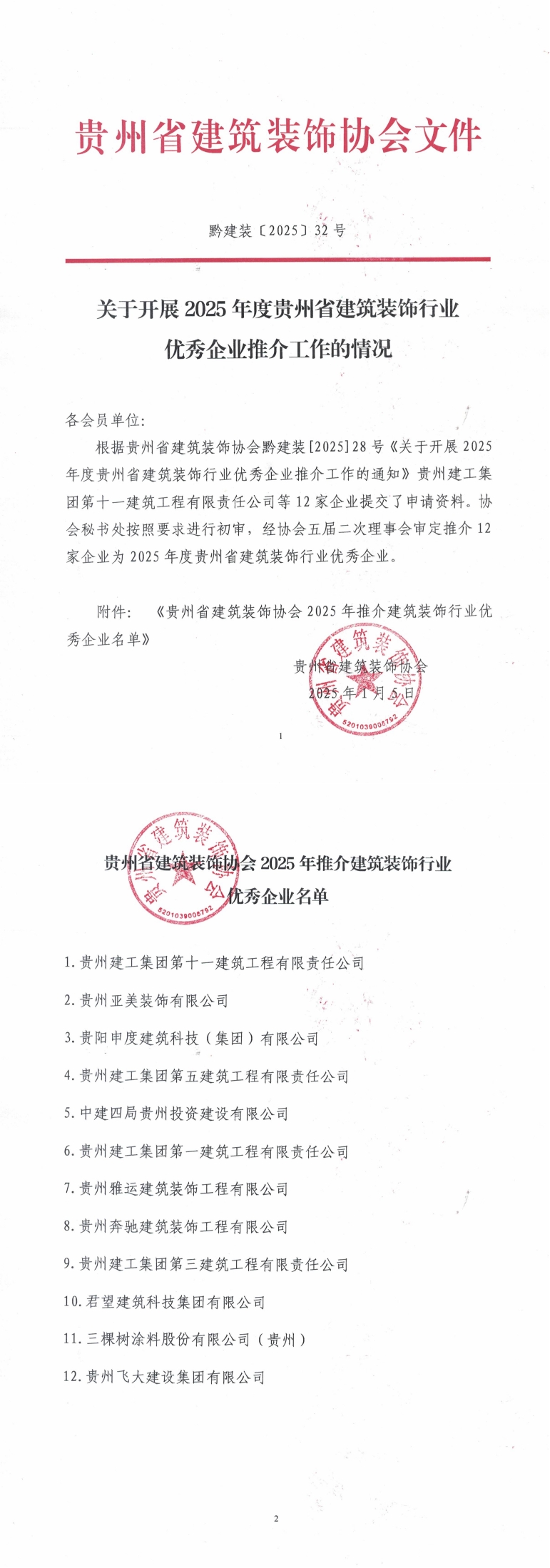关于开展2025年度贵州省建筑装饰行业优秀企业推介工作的情况