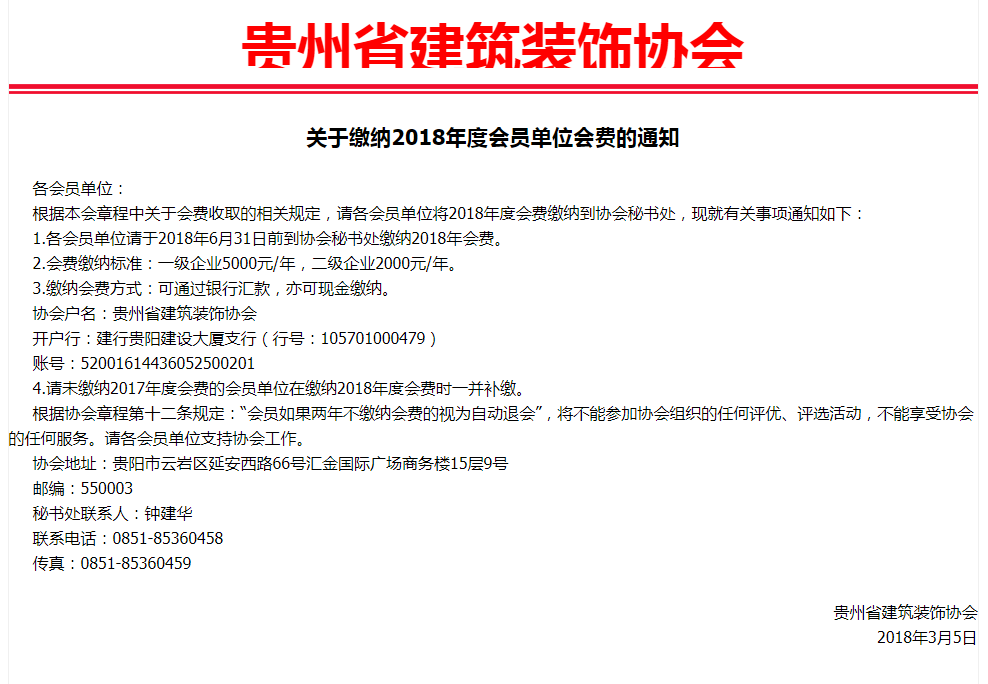 关于缴纳2018年度会员单位会费的通知