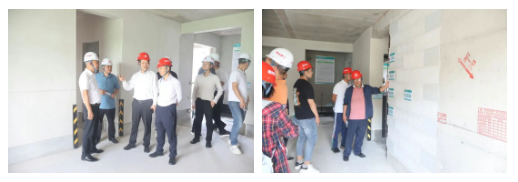 活动伊始,参会人员集中观摩了麦架片区城中村改造项目的庭院式项目部、花园式现场,重点查看了防水工程、主体结构、二次结构施工情况,仔细研读磷石膏抹灰样板、卫生间防水样板的工艺细节,直观感受项目在质量管控方面的标准化与精细化实践 。观摩过程中,参会人员不时驻足交流,针对样板施工工艺、质量管控要点等问题展开探讨,项目工作人员现场答疑解。