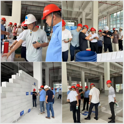 • 产品应用“铺路石”:组织会员单位实地观摩磷石膏高精互锁模块、自流平、抹灰砂浆等新型产品,通过企业技术人员现场讲解特性、工艺及优势,破解会员单位对新材料“不了解、不敢用”的难题,直接推动磷石膏产品从“实验室”走向“工程现场”,为产业规模化应用扫清认知障碍。